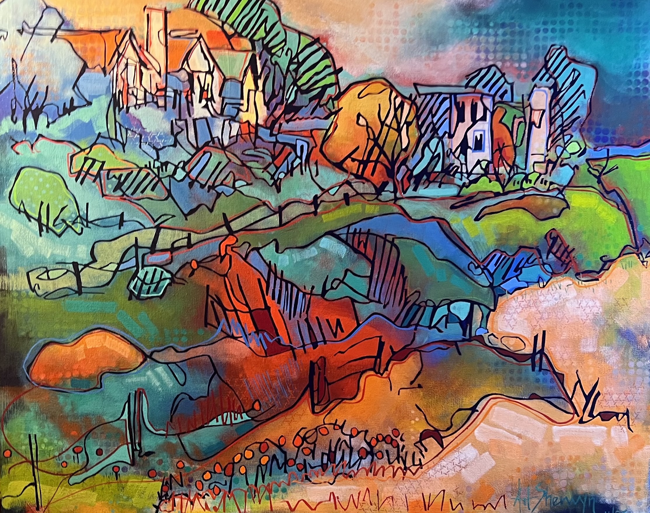 Born from years of experimentation with landscape and cityscapes, Art Sherwyn’s art exhibition will highlight works inspired by the town of Cambria. Choosing perspective as his challenge and Cambria as the story, Art took to the Cambrian streets for several months with his drawing pencil and sketchpad, searching for unique and engaging perspectives potentially deserving of time in the studio, a canvas, and acrylic paint. These works were inspired by the many abstract shapes, patterns and designs generated by the buildings’ windows, roof lines, stairs, doorways, and signage which adorn the architecture - views the normal eye might miss. He celebrated those views with engaging and often intense color schemes, intricate line work and implied textures. The works are created to be viewed both afar and up close. From afar, you see its overall compositional foundation, and up close you experience the detailed line work and the many smaller works of art within the entire piece. His works combine vibrant colors and mark making with his love for storytelling; viewers will experience Cambria from the unique perspectives of Art Sherwyn.