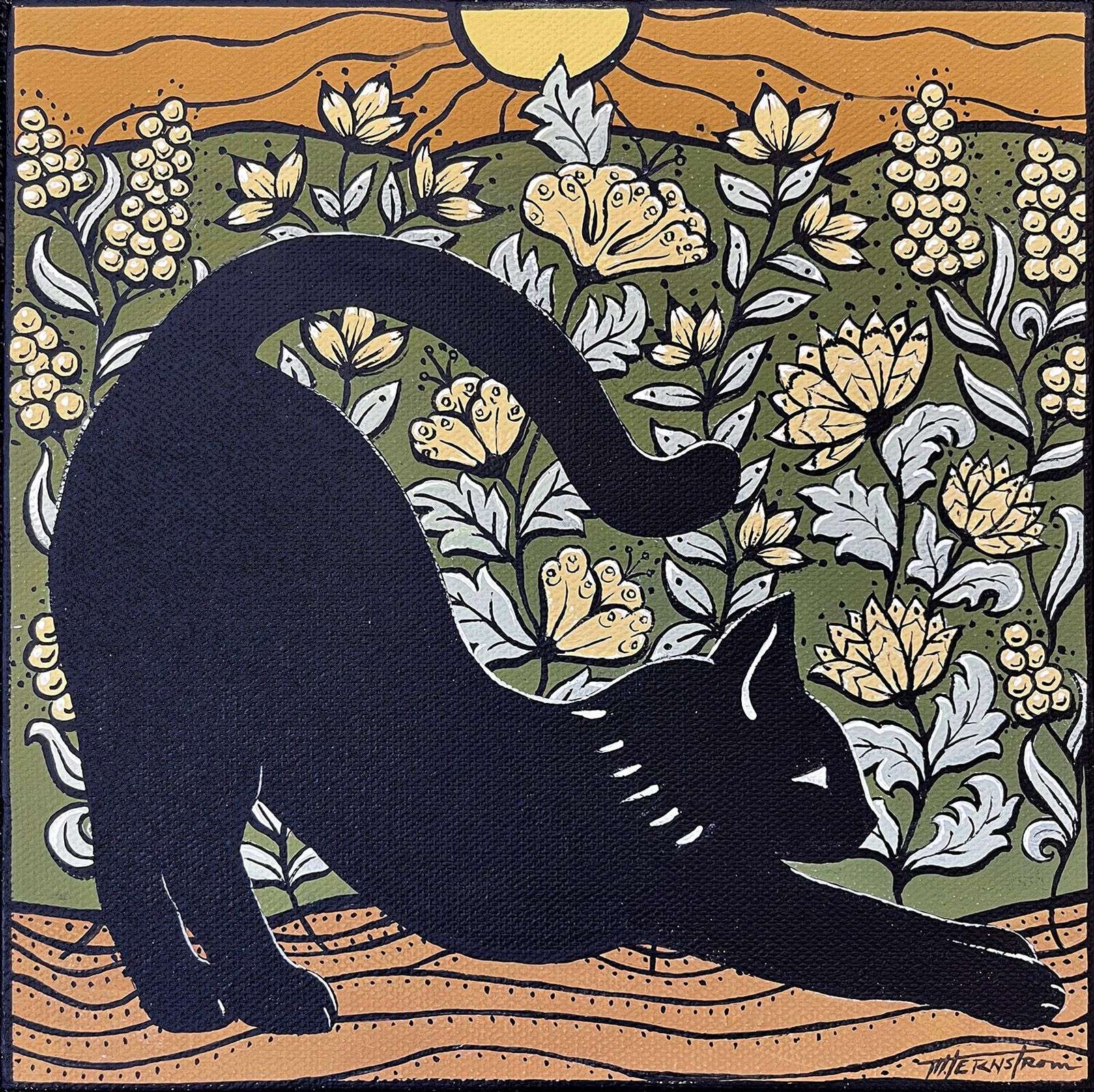 Cat Stretch in a Garden by Margo Ternstrom